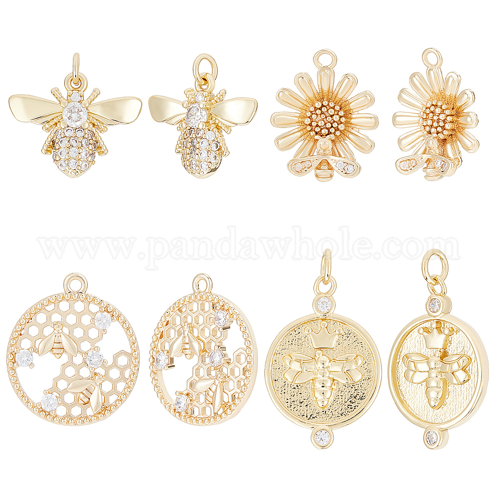 8 шт 4 стиль стойка покрытие латунь микро паве кубический цирконий подвески, с прыжковых колец, долговечный, без кадмия и без свинца, пчелы и цветок с пчелой
