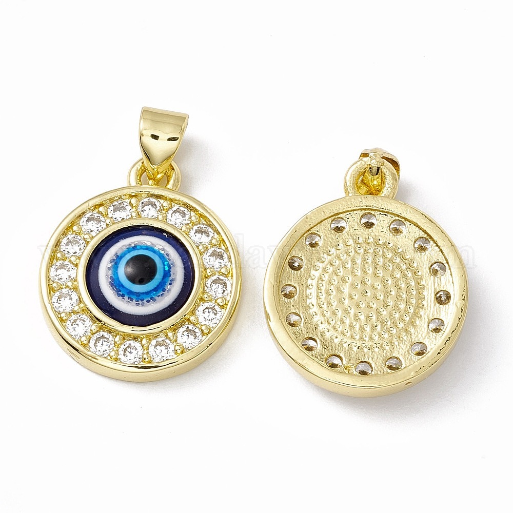 Покрытие стойки латунь микропаве прозрачные подвески из кубического циркония, с эмалью, долговечный, без кадмия и без свинца, плоские круглые с сглаза