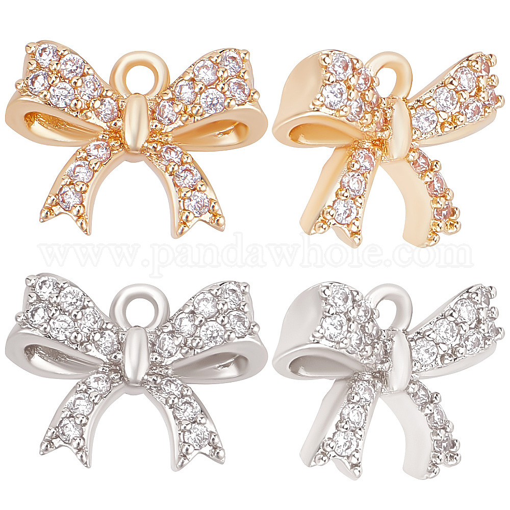 12 шт. 2 цвета стойка покрытие латунь микро паве кубический цирконий подвески, долговечный, бантом