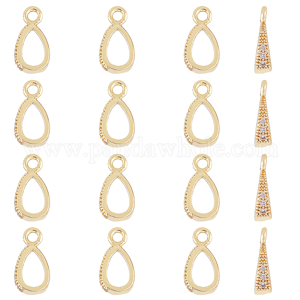 Подвески из прозрачного кубического циркония в виде капли из латуни: около 11.5 мм в длину, шириной 6 мм , толщиной 3 мм , отверстие : 1.6 мм, 16 шт;