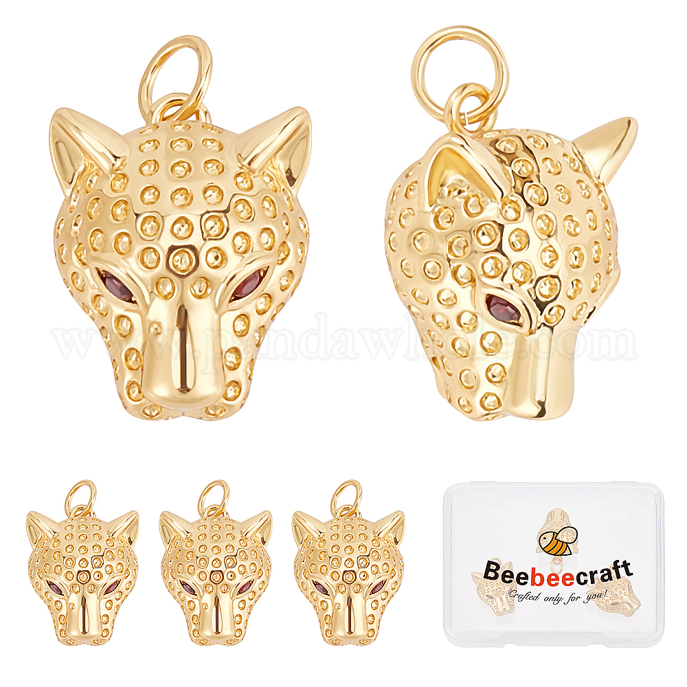 • Настоящее золото 18K 5подвески из кубического циркония с покрытием из латуни с микропаве, с целью перехода в кольце, леопард, реальный 18 k позолоченный, 17x12.5x9 мм, Перейти кольцо: 5x0.6 мм, внутренний диаметр: 3.4 мм