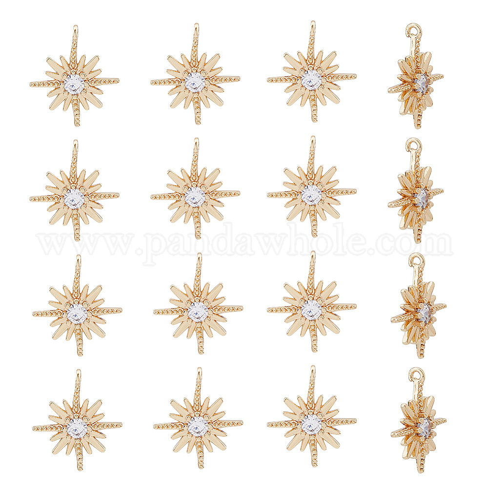 16 шт. Латунные подвески, без никеля , с кубического циркония, звезда, прозрачные