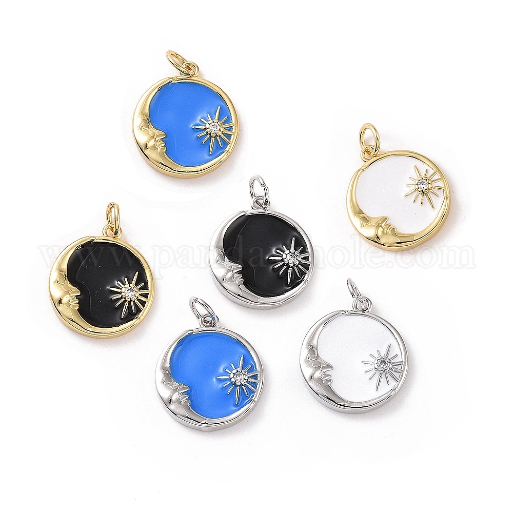 Стойка металлическая латунная микропрофилированная кубическая циркония подвески, с эмалью и кольцом для прыжков, долговечный, без кадмия и без свинца, плоский круглый и солнце и луна