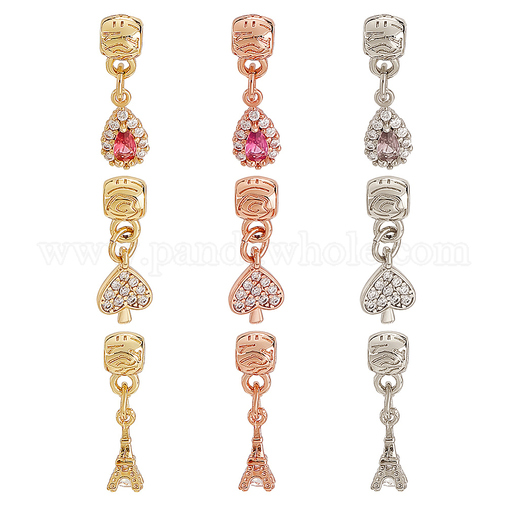 9 шт. 9 подвески из латуни с микропаве из прозрачного кубического циркония, долговечный, без кадмия и без свинца, башня и сердце и слеза (02FAB6)