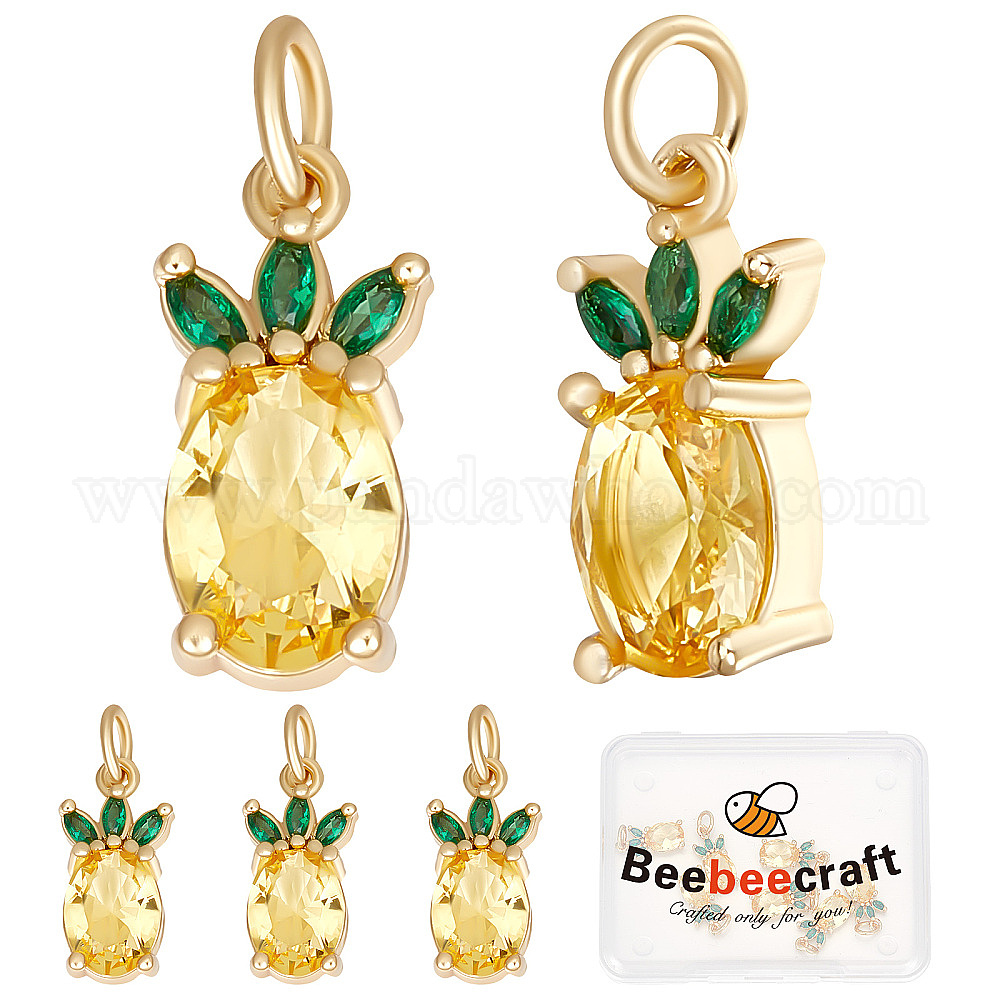 8шт. латунные подвески с микропаве из золота и кубическим цирконием, с прыжковых колец, без никеля , ананас