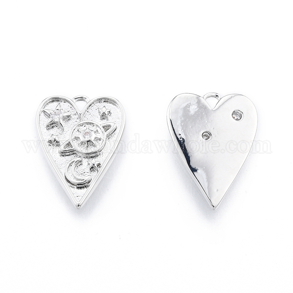 Латунные микропаве прозрачные подвески с фианитом, сердце с планетой