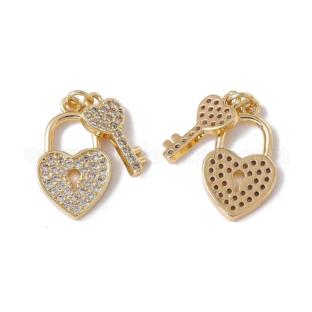 Латунные микропаве прозрачные подвески с фианитом, с целью перехода в кольце, без кадмия, без никеля и без свинца, стойки покрытие, сердце замок и ключ (02FRND)