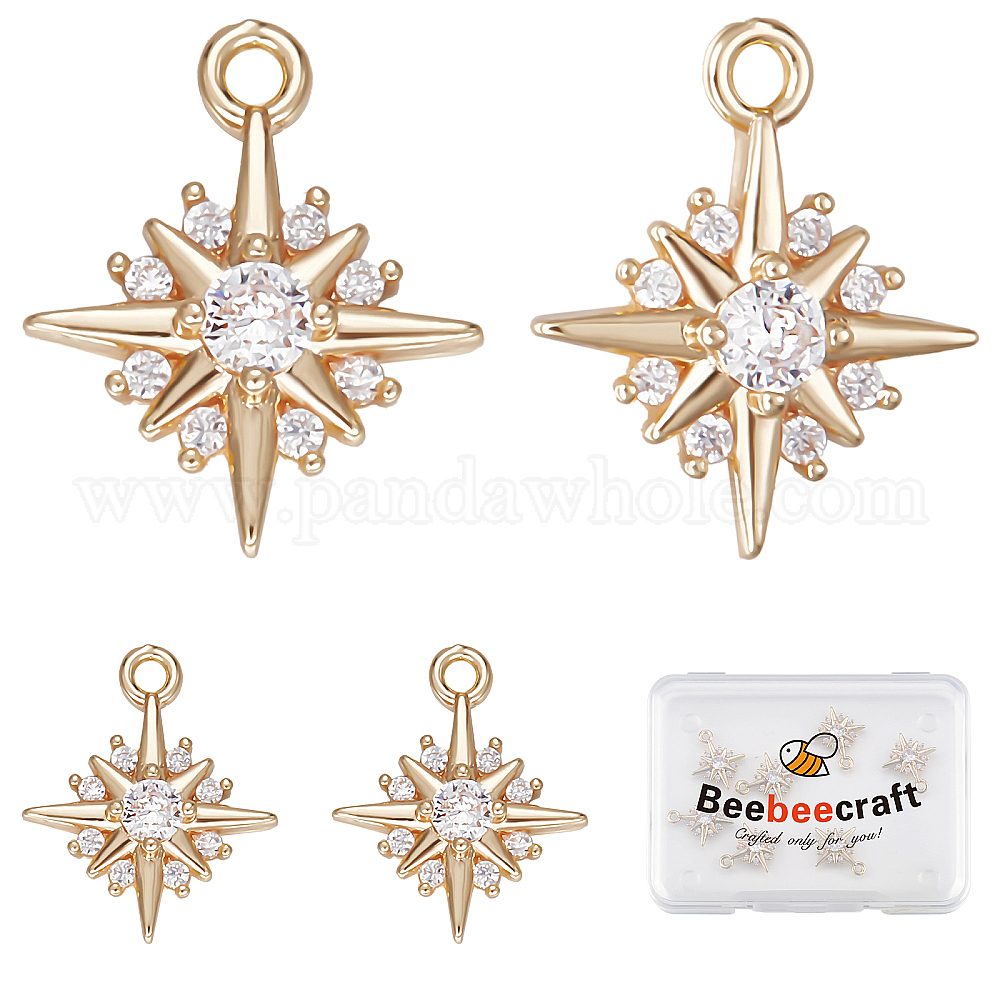 Подвески из прозрачного кубического циркония в виде звездочек из латуни с микропаве: длина около 0.55 дюйма (14 мм), 0.47 дюйм (12 мм) шириной, 0.12 дюйм (3 мм) толщиной, отверстие: 0.05 дюйм (1.2 мм), около 14 шт .;