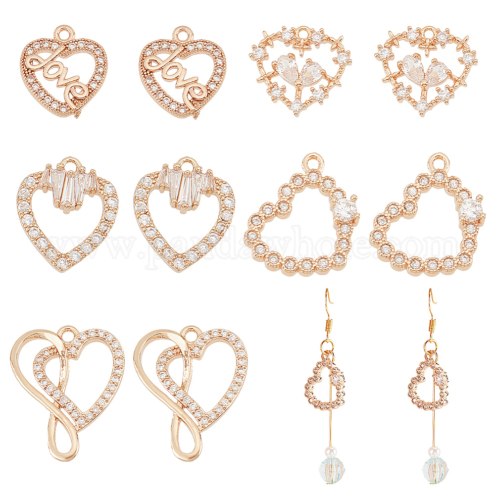 10 шт. 5 стили латунные микропаве прозрачные кубические циркониевые подвески, сердце