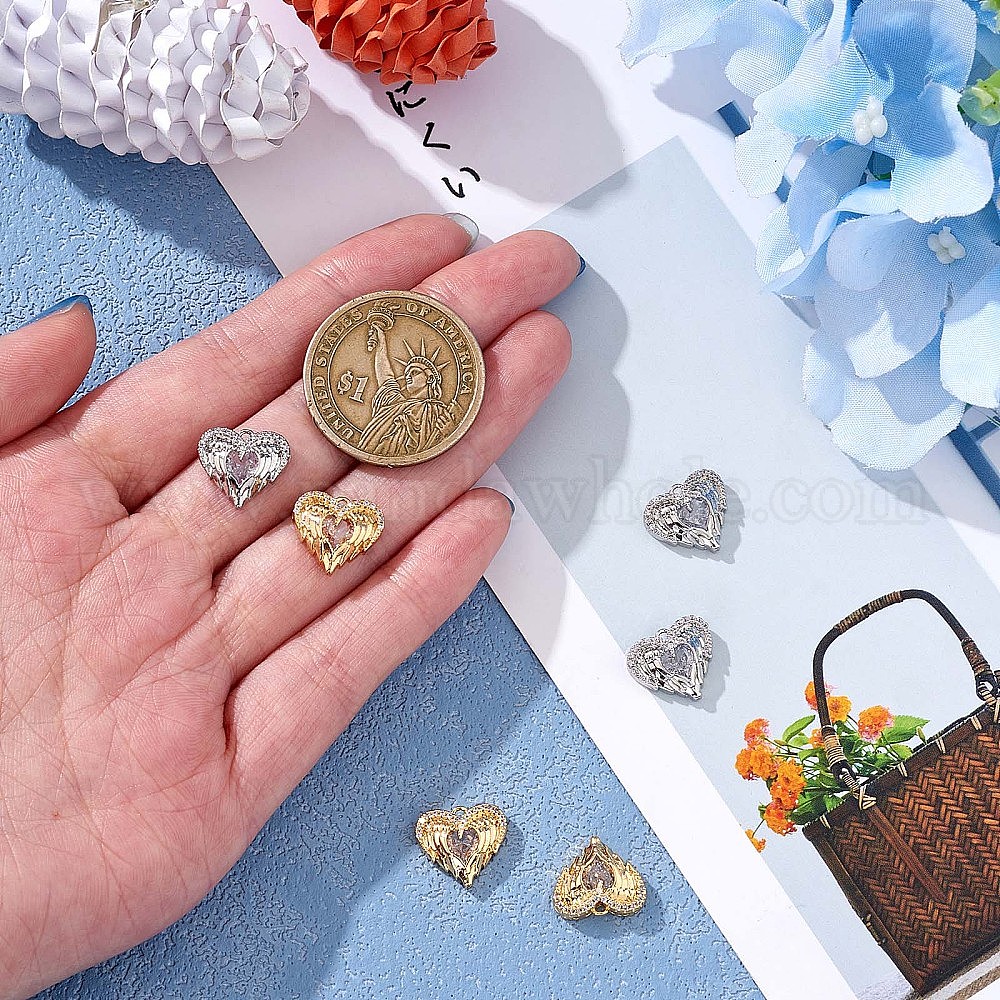 5 штук крылья ангела любовь сердце очарование кулон сердце прозрачный кубический цирконий очарование медное покрытие для ювелирных изделий ожерелье серьги изготовление ремесел