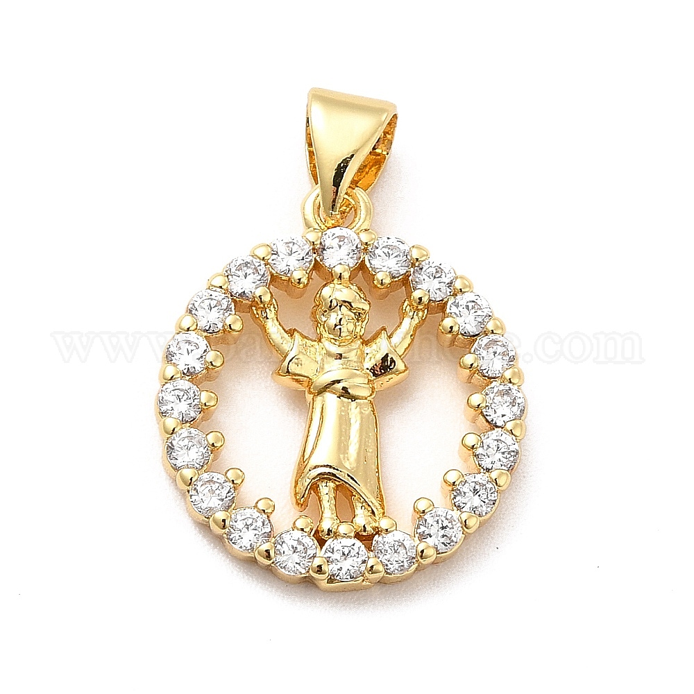 Стойка металлическая латунная микропрофилированная кубическая циркония подвески, плоский круглый с религиозным божественным ребенком jusus charm, долговечный, без кадмия и без свинца