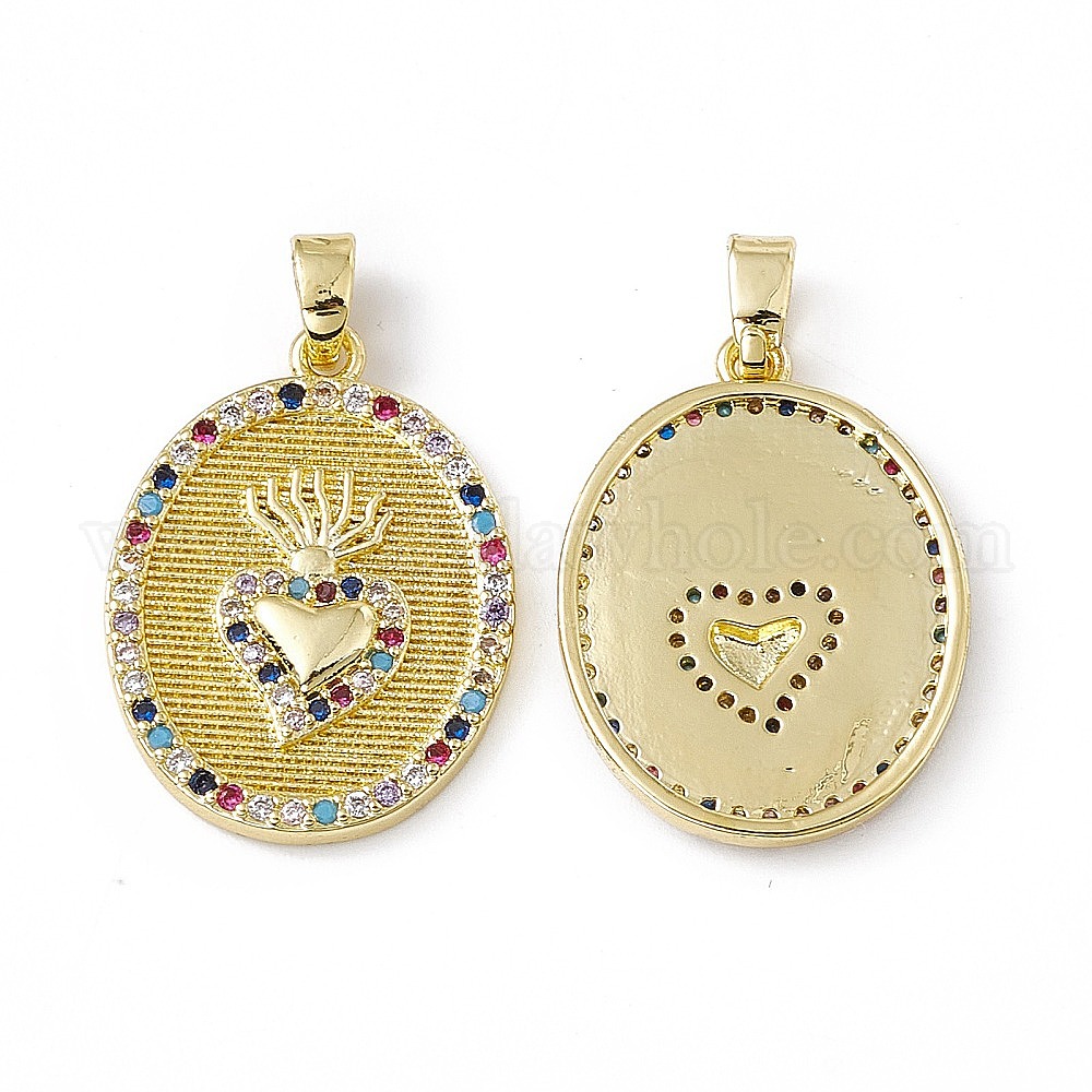 • Настоящее золото 18K Латунные микро проложить кубического циркония подвески, без кадмия, без никеля и без свинца, овал с подвесками в виде священного сердца, мексиканские подвески Milagro Flaming Holy Heart, реальный 18 k позолоченный, 23.5x17.5x2 мм, отверстие : 2.5x5 мм