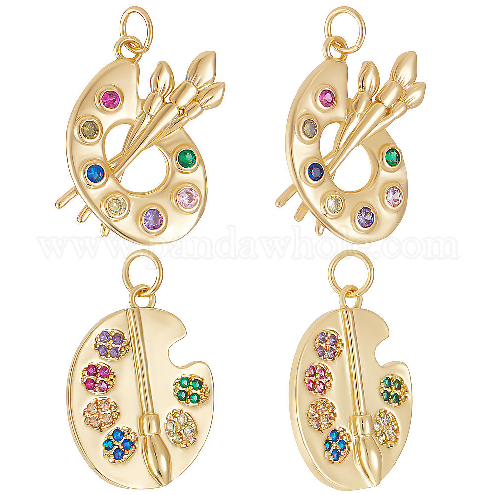 8шт 2 стильные латунные микроцветные подвески из кубического циркония, долговечный, очарование палитры красок