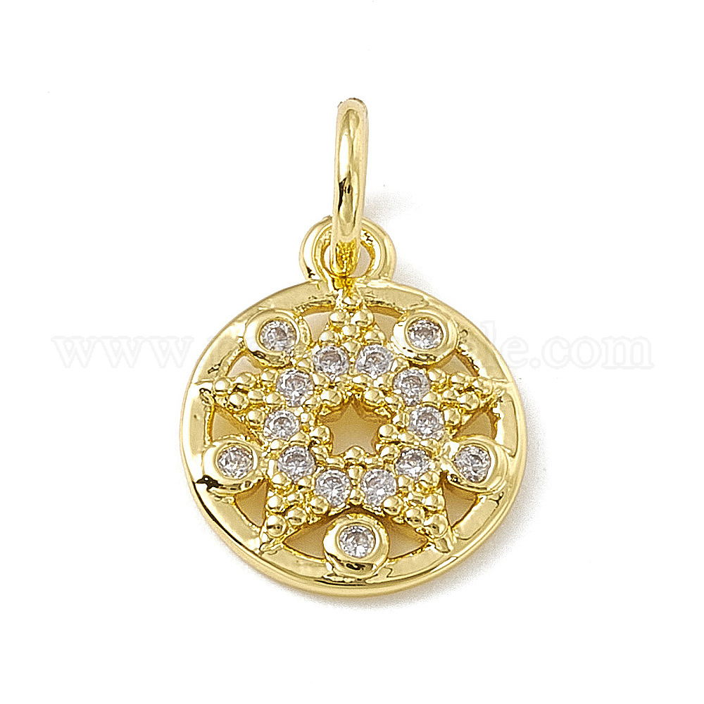 Латунные микропаве прозрачные кубические циркониевые подвески, без кадмия и без свинца, плоские круглые со звездой, с открытыми кольцами прыжковых
