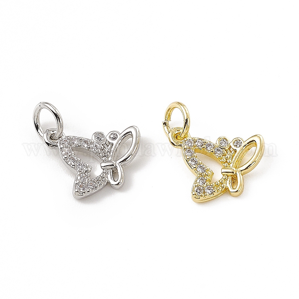 Подвески-бабочки из латуни с микропаве из прозрачного кубического циркония, с открытыми кольцами прыжковых (02GGB5)