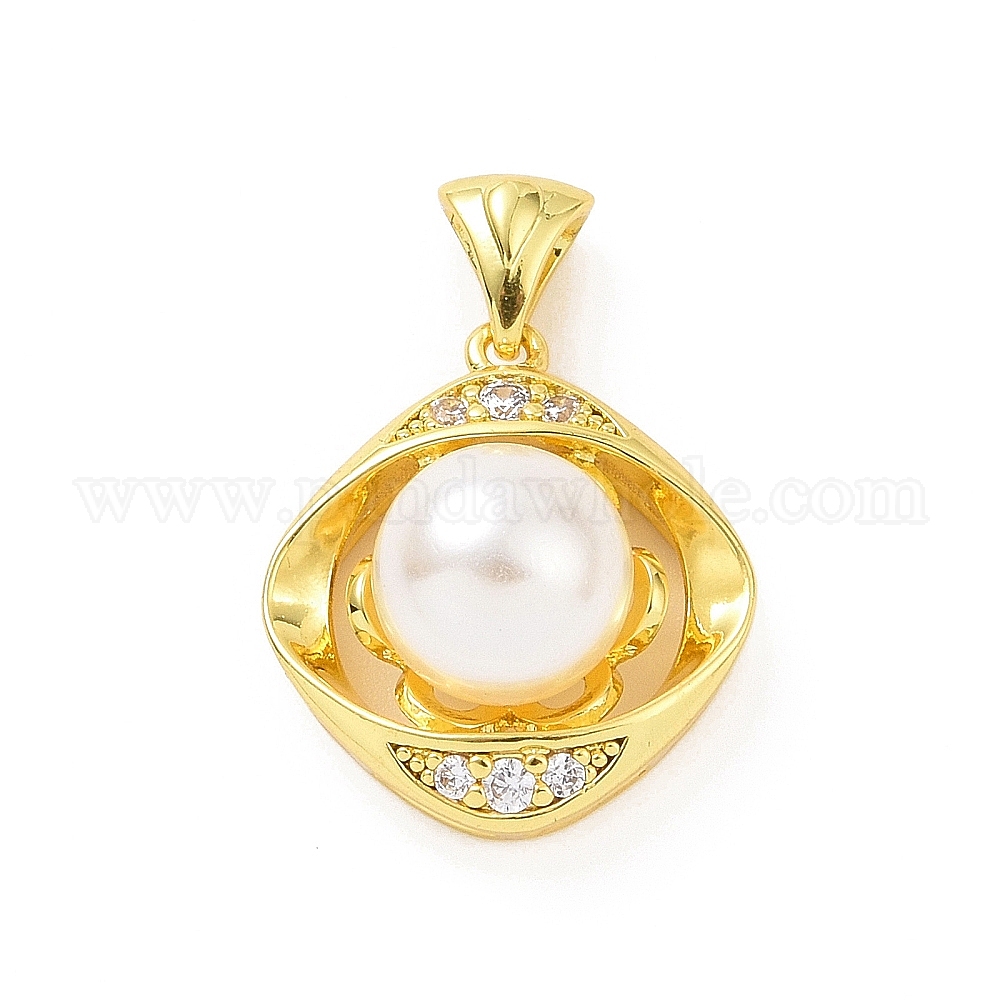 Экологически чистые подвески из латуни с микропаве из кубического циркония, с искусственным жемчугом из абс-пластика, без кадмия и без свинца, долговечный, очарование глаза ромба (02GGNJ)