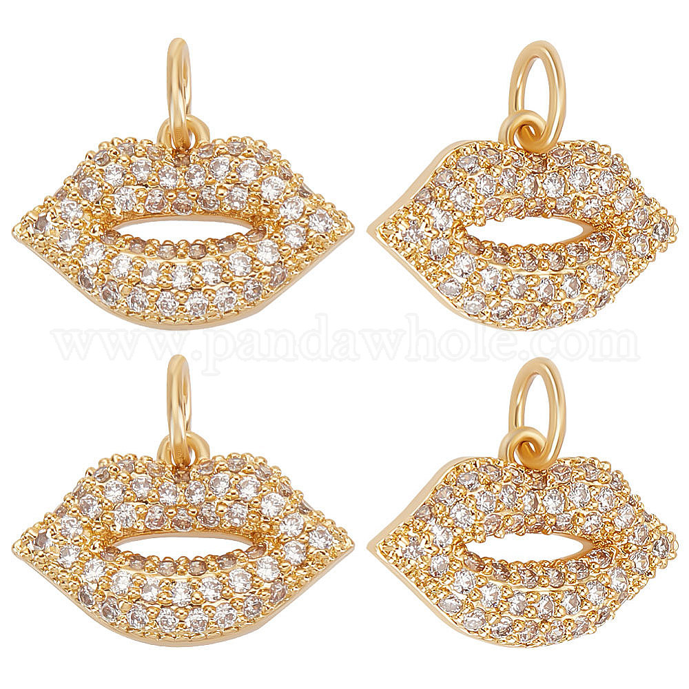 6шт. латунные подвески с микропаве из кубического циркония класса ААА, долговечный, очарование губ, без кадмия, без никеля и без свинца