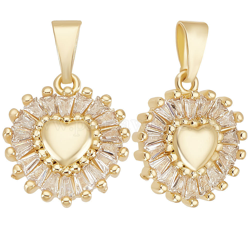 6 кулоны из латуни с прозрачным кубическим цирконием, плоский круглый с подвеской в виде сердца