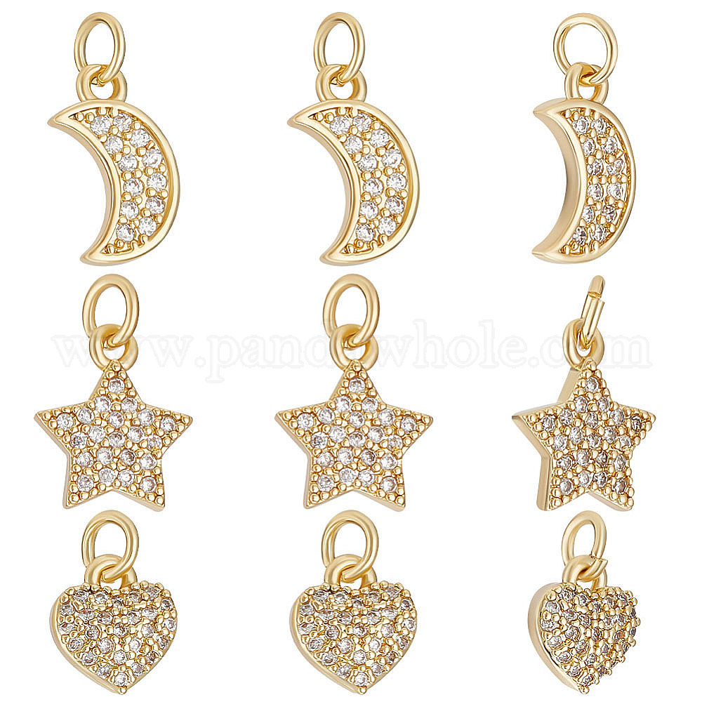 12 шт 3 стиль латунь микропаве прозрачные подвески из кубического циркония, луна и сердце и очарование звезды, с целью перехода в кольце