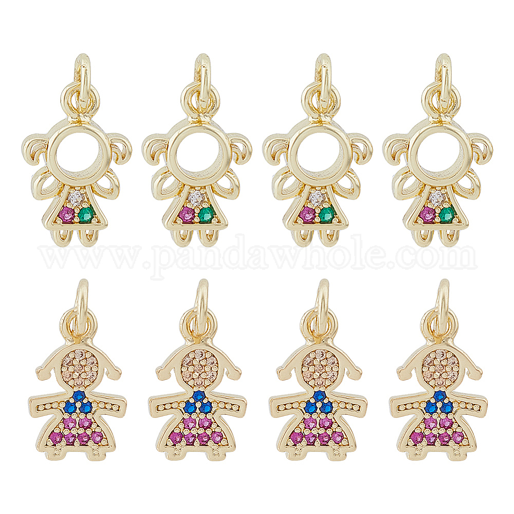 8 шт 2 стиль латунные микропаве подвески из фианита, с целью перехода в кольце, реальный 18 k позолоченный, очарование девушки