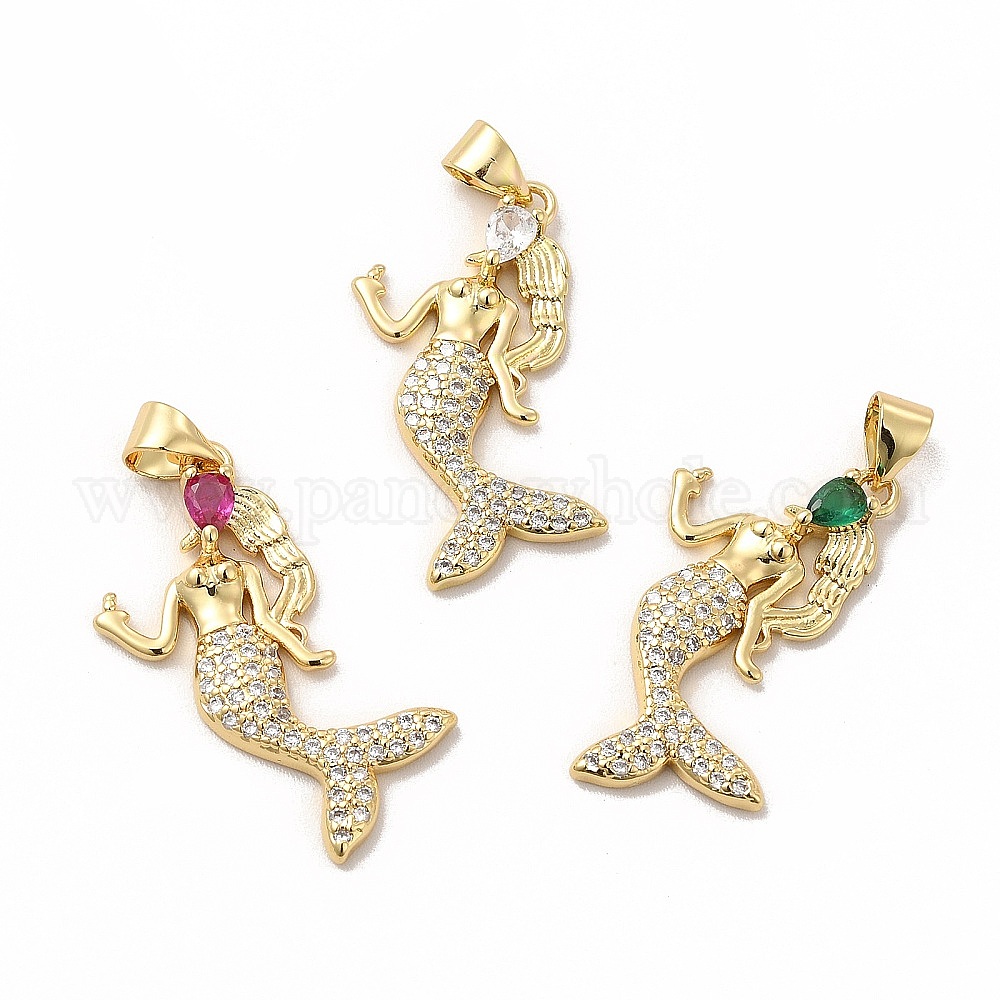 Стойки обшивки латунь кубического циркония подвески, без кадмия и без свинца, реальный 18 k позолоченный, долговечный, очарование русалки