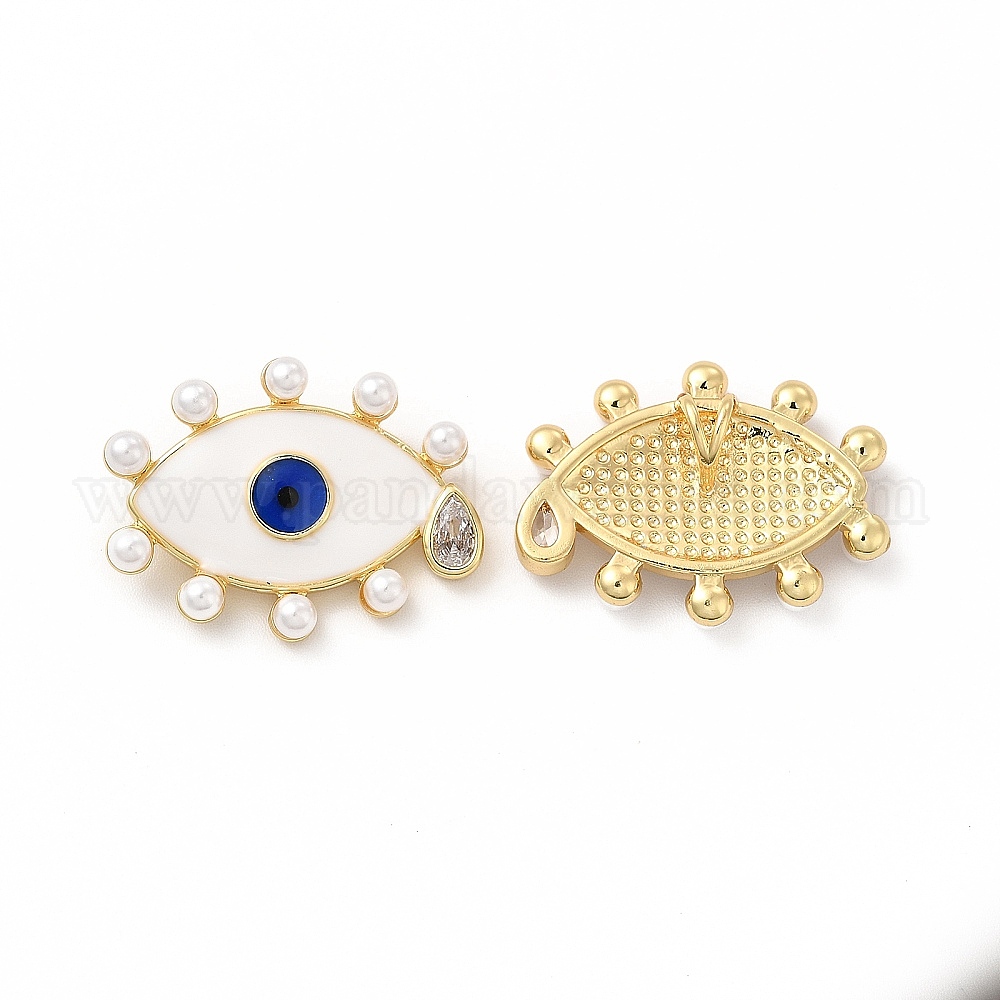• Белый Стойки обшивки латунь кубического циркония подвески, с пластиковой имитацией жемчуга и эмали, без кадмия и без свинца, реальный 18 k позолоченный, долговечный, сглаз со слезинкой, белые, 18.5x25x4 мм, отверстие : 3x4 мм