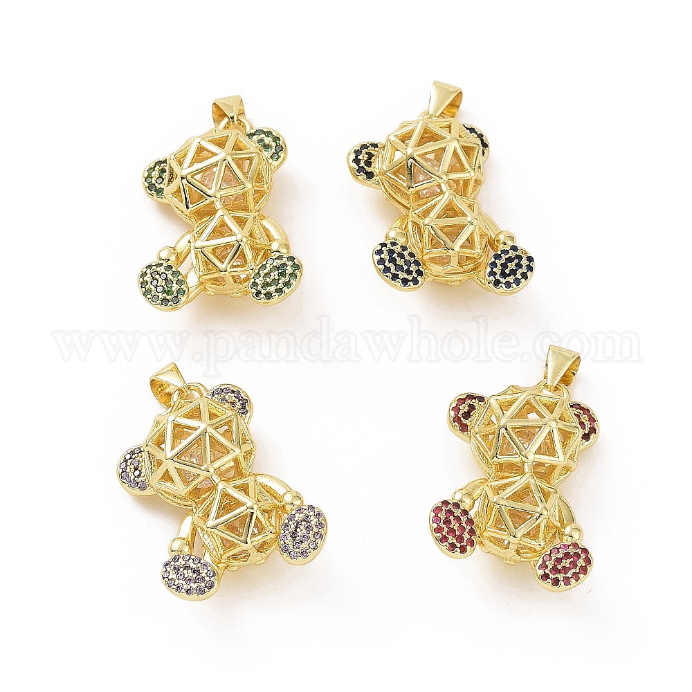 Латунные микро проложить кубического циркония подвески, 3d оригами медвежонок, золотые