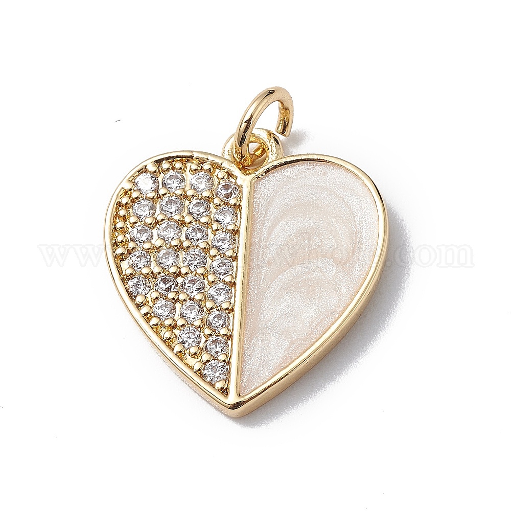 Латунные микро проложить кубического циркония подвески, с эмалью и прыжковым кольцом, без кадмия и без свинца, реальный 18 k позолоченный, долговечный, шарма сердца