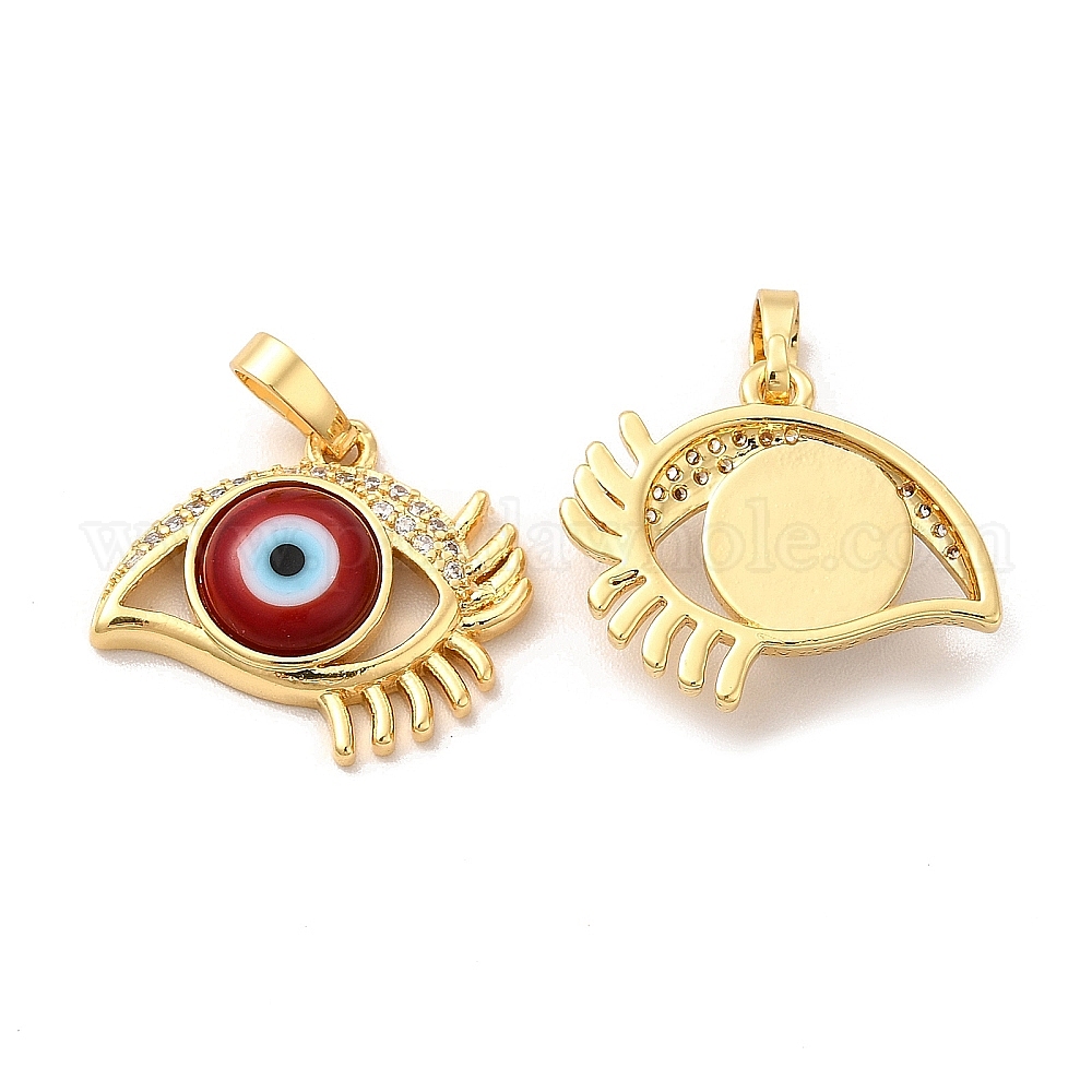 Покрытие стойки латунь микропаве прозрачные подвески из кубического циркония, с ручным злым Lampwork глаза, без кадмия и без свинца, долговечное покрытие из настоящего золота 18 k, очарование глаз