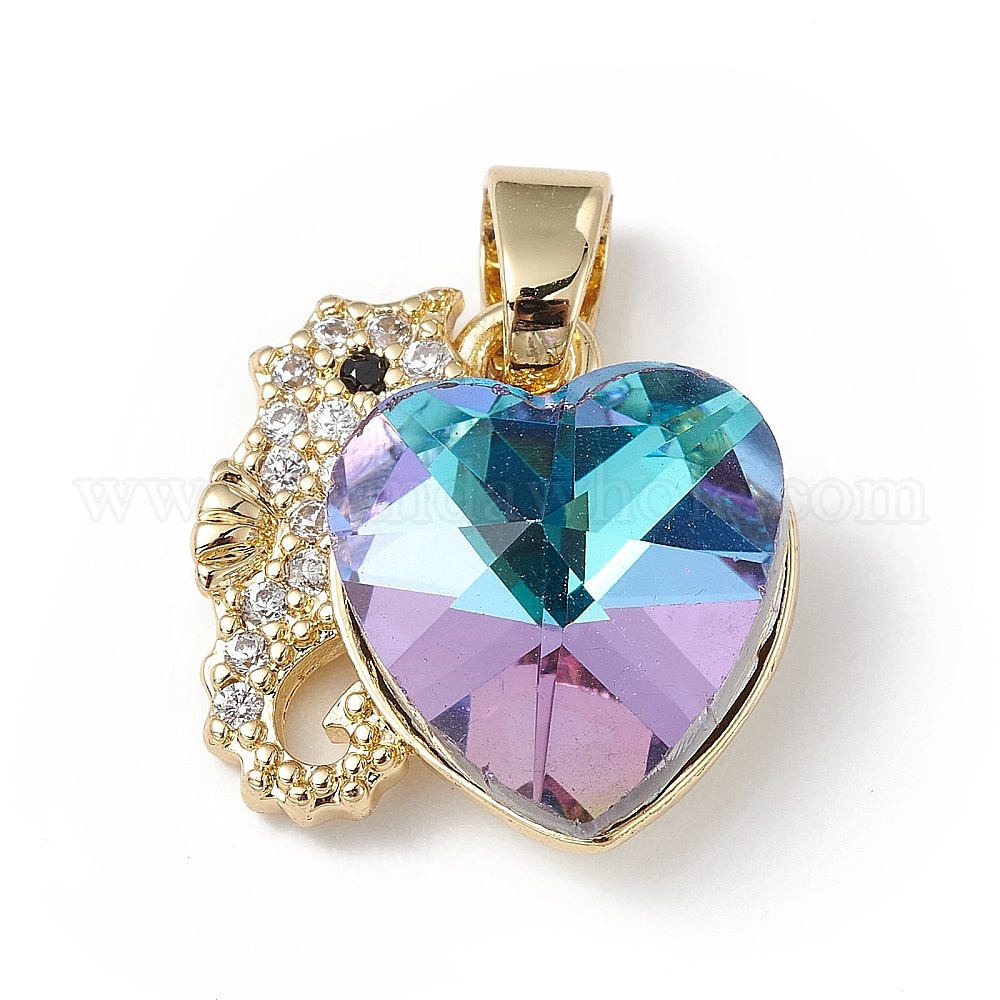 Настоящие позолоченные подвески из латуни с микропаве из кубического циркония, со стеклом, долговечный, без кадмия и без свинца, морской конек с сердцем