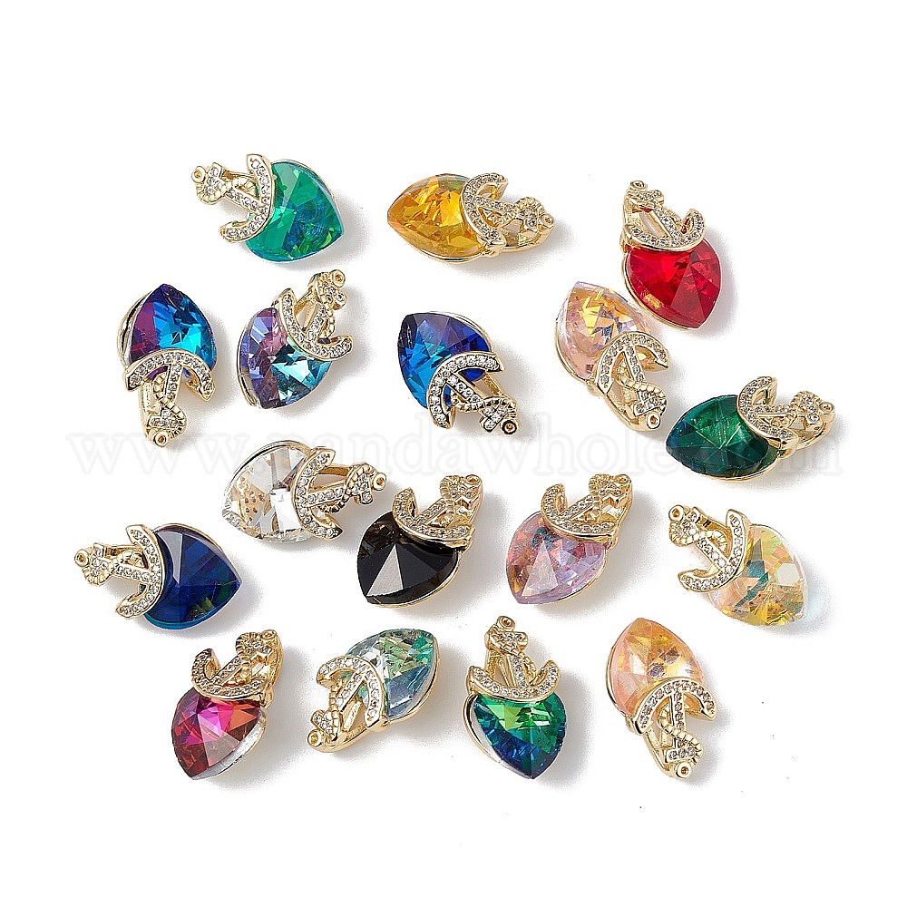 Настоящие позолоченные подвески из латуни с микропаве из прозрачного кубического циркония, со стеклом, долговечный, без кадмия и без свинца, лодочный якорь и подвеска в виде сердца