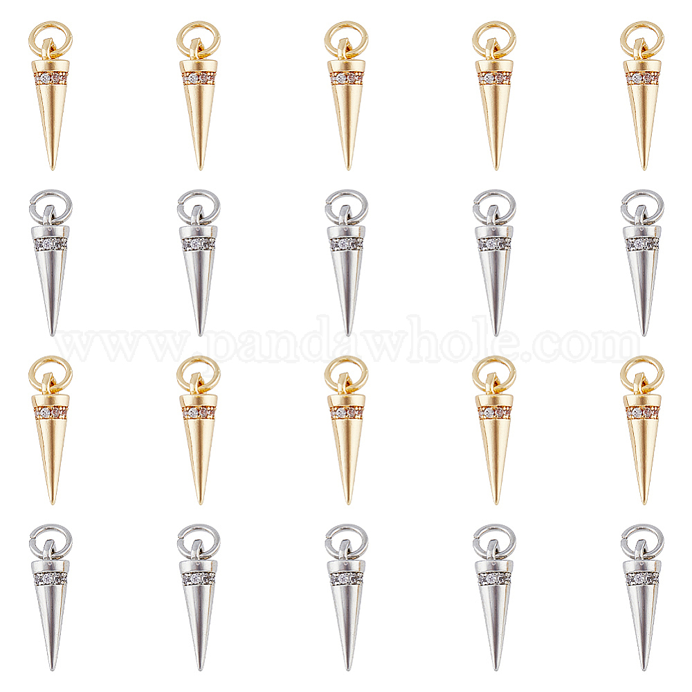 20 шт. 2 цвета стойка покрытие латунь микро паве кубический цирконий подвески, долговечный, с целью перехода в кольце, шарм конус/шип (02HEFG)
