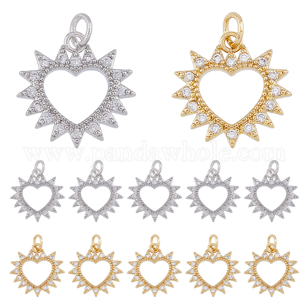 12 шт. 2 цвета латунные подвески из прозрачного кубического циркония с микропаве, с целью перехода в кольце, шарма сердца (02HEFX)