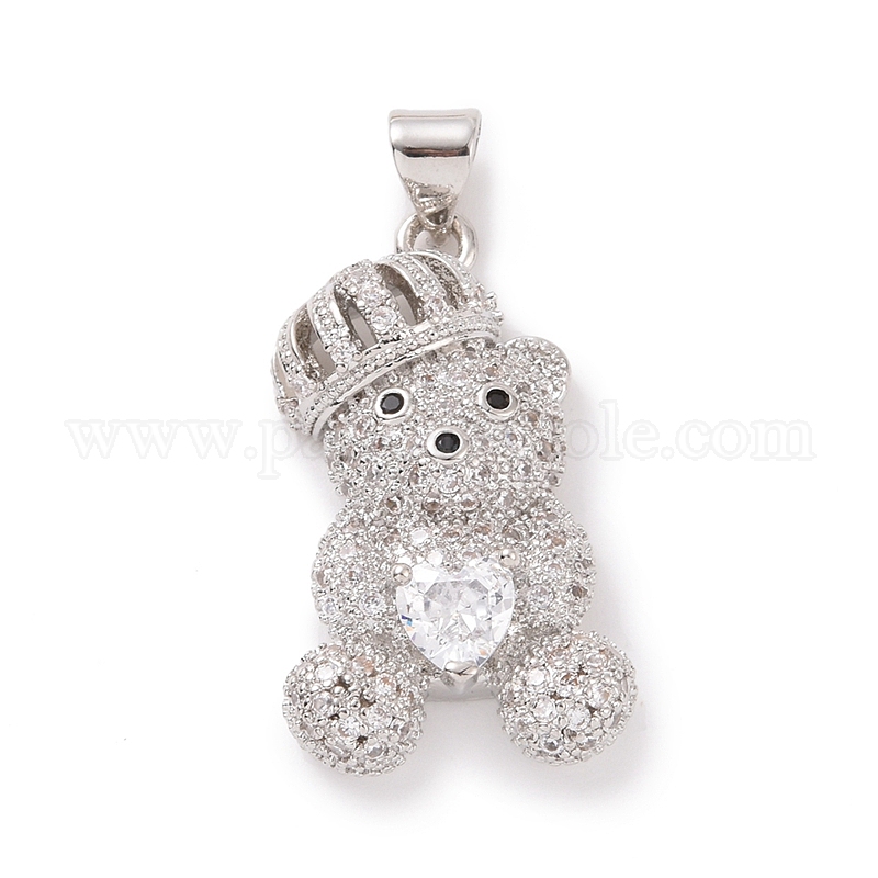 • Прозрачный Латуни циркония кубической подвески, без кадмия и без свинца, платина, мишка с сердечками, прозрачные, 26x15x10 мм, отверстие : 4x4.5 мм