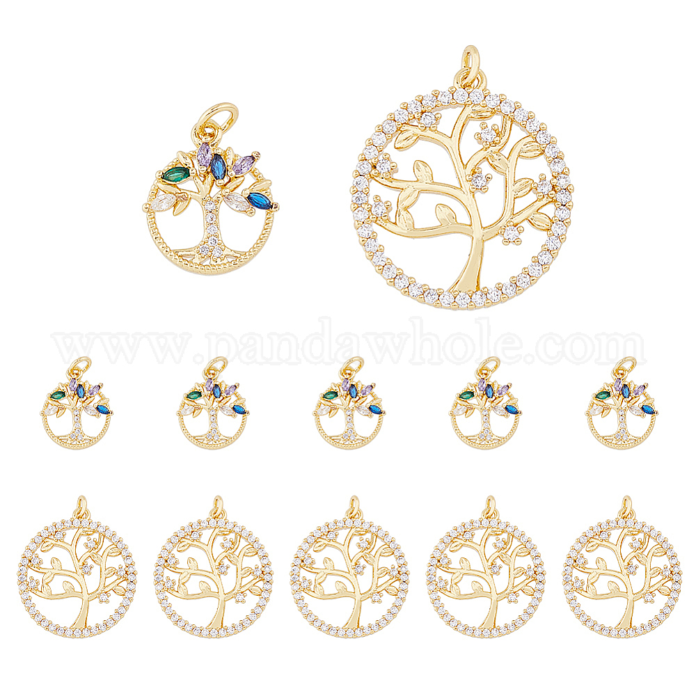 12 шт 2 стили латунные подвески из микропаве с фианитом, реальный 18 k позолоченный, долговечный, с целью перехода в кольце, кольцо с подвеской в виде дерева