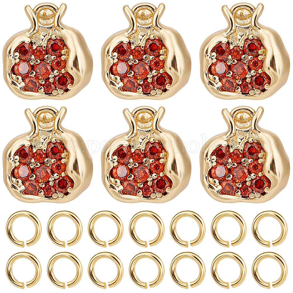 6шт. латунные подвески с микропаве из шоколадного кубического циркония, без никеля , форма граната, с латунными открытыми соединительными кольцами (шт.)