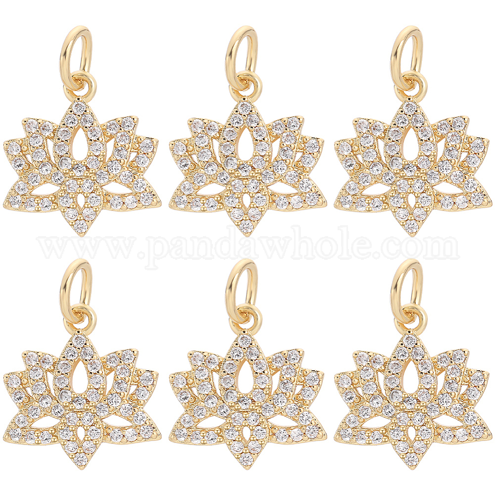 6 шт. Латунные брелоки из прозрачного кубического циркония с микропаве, без кадмия и без свинца, очарование лотоса (02J36J)