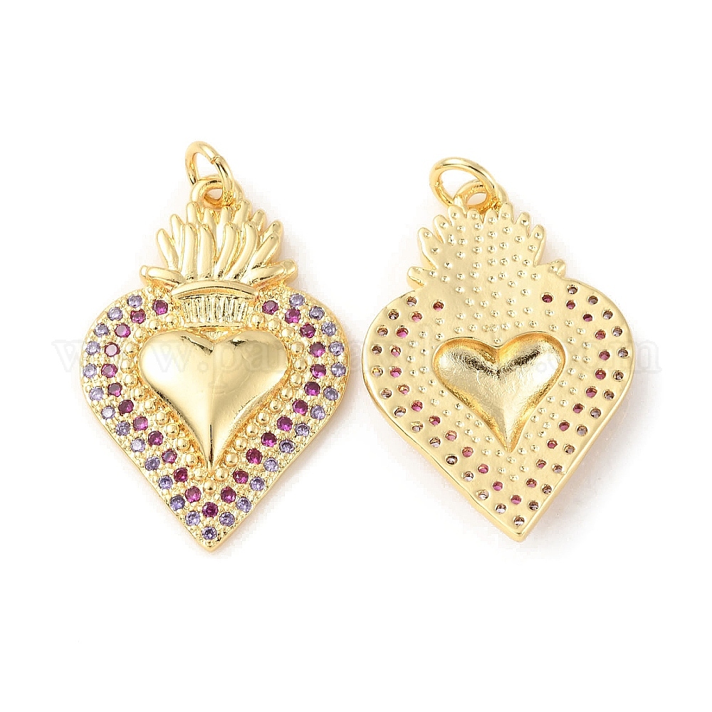 • Настоящее золото 18K Стойка металлическая латунная микропрофилированная кубическая циркония подвески, без кадмия и без свинца, долговечный, с целью перехода в кольце, очарование священного сердца, реальный 18 k позолоченный, 27x18.5x3 мм, отверстие : 3.2 мм