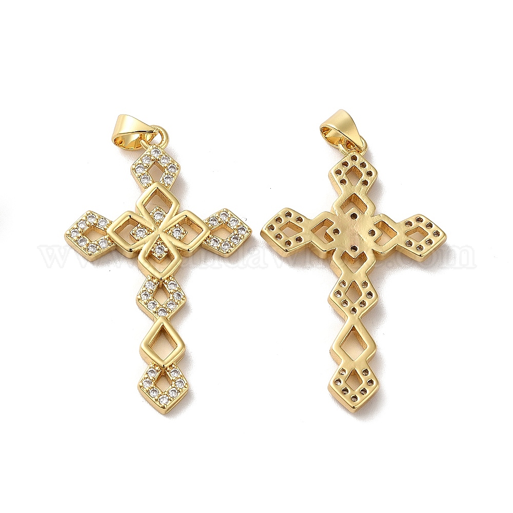 Покрытие стойки латунь микропаве прозрачные подвески из кубического циркония, долговечный, без свинца и без кадмия, крест очарование, религия