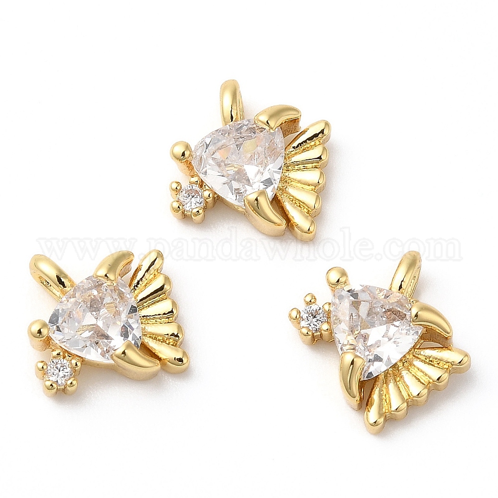 • Настоящее золото 18K Стойка металлическая латунная микропрофилированная кубическая циркония подвески, долговечный, без свинца и без кадмия, рыба, реальный 18 k позолоченный, 8x8x4 мм, отверстие : 1 мм