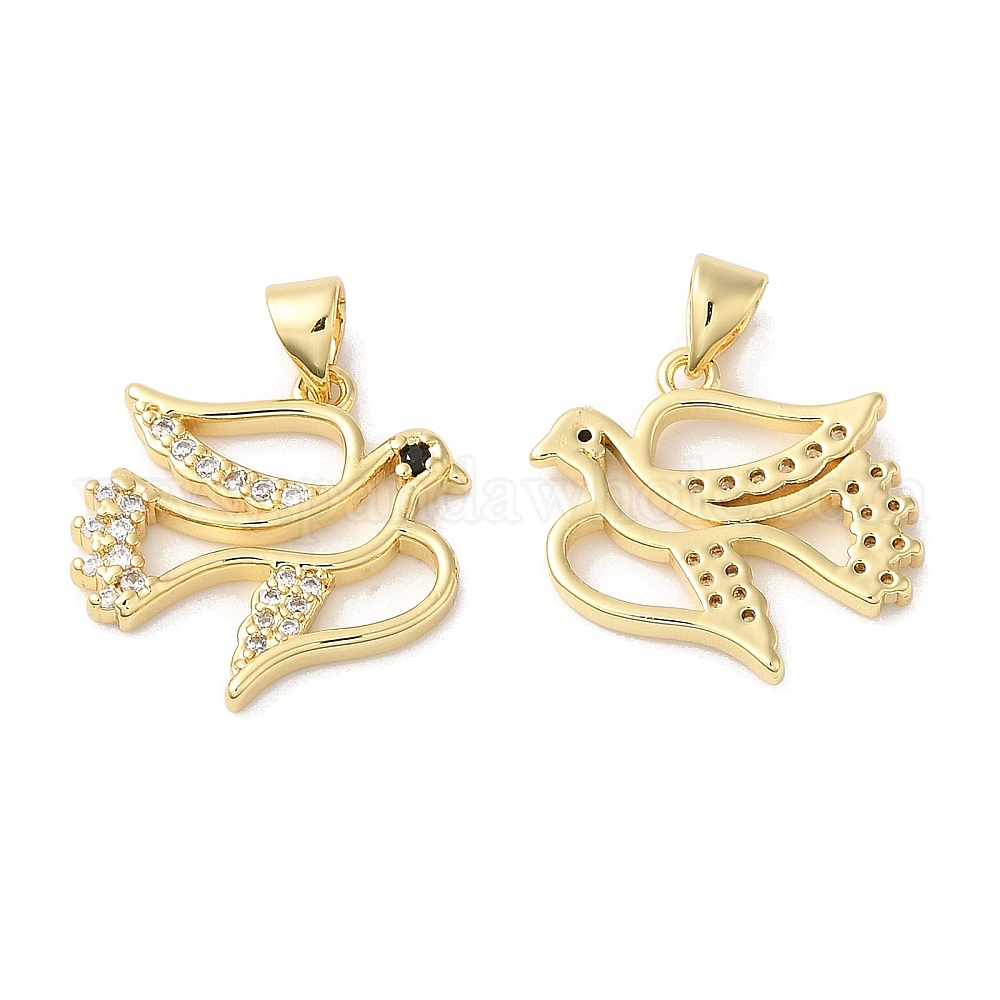 • Настоящее золото 18K Покрытие стойки латунь микропаве прозрачные подвески из кубического циркония, амулеты птиц, долговечный, без кадмия и без свинца, реальный 18 k позолоченный, 17x18.5x2 мм, отверстие : 5x3.5 мм