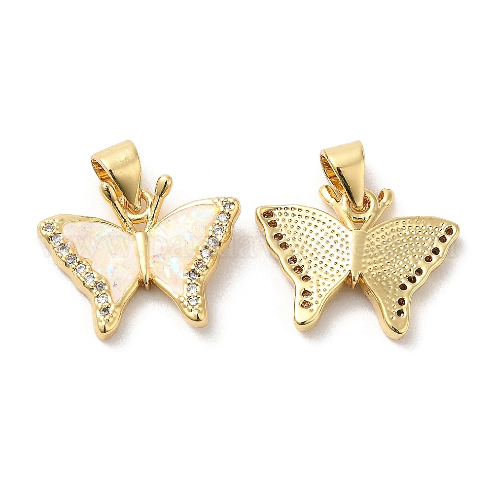 • Настоящее золото 18K Покрытие стойки латунь микропаве прозрачные подвески из кубического циркония, со смолистым имитационным опалом, без кадмия и без свинца, долговечный, бабочки прелести, реальный 18 k позолоченный, 14x17.5x2.5 мм, отверстие : 5x3.3 мм