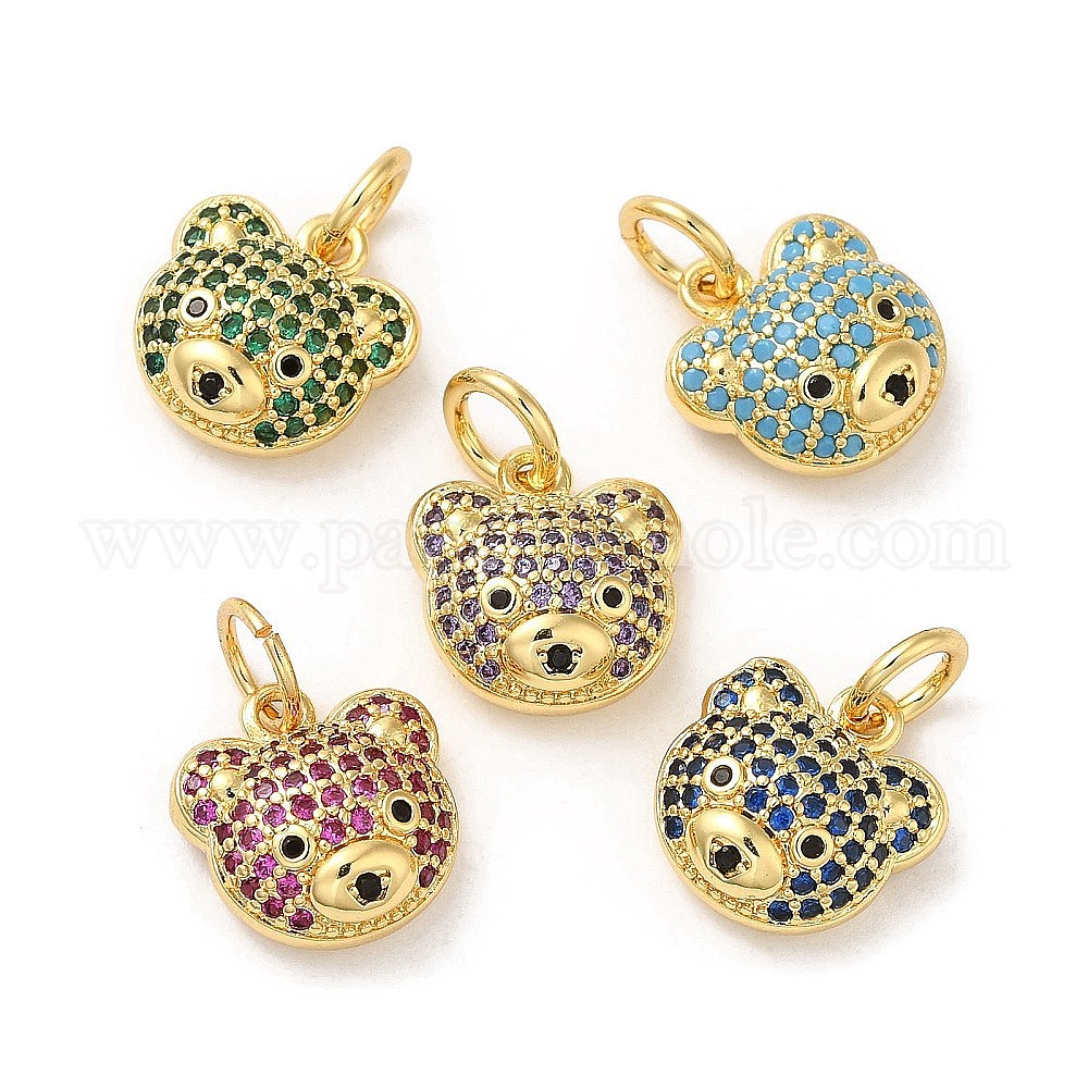 • (52) Непрозрачная лаванда Латунные подвески, с кубического циркония, без свинца и без кадмия, нести прелести, реальный 18 k позолоченный, разноцветные, 12.5x12x5 мм, отверстие : 4 мм