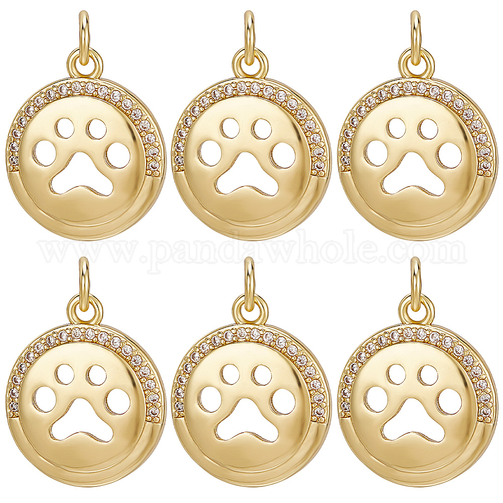 10 кулоны из латуни с микрочастицами и кубическим цирконием., реальный 18 k позолоченный, с целью перехода в кольце, плоские круглые с подвесками в виде лап