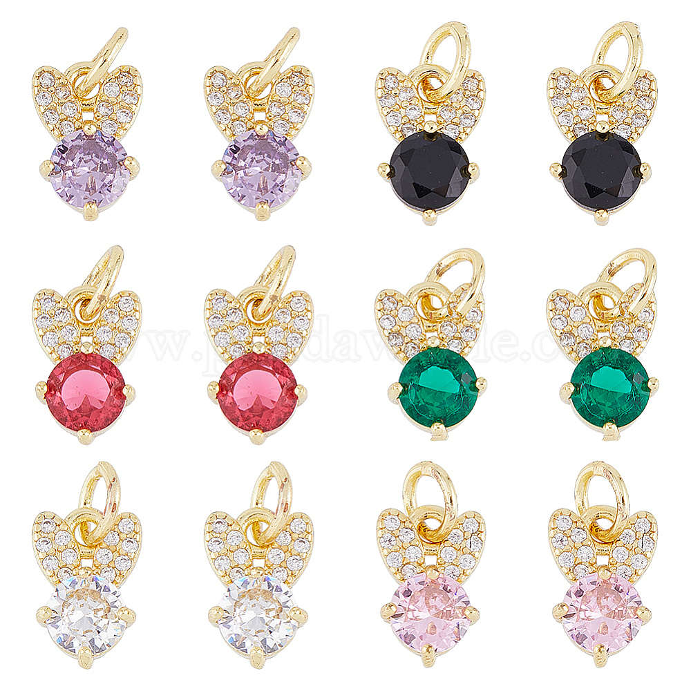 • (52) Непрозрачная лаванда 12 шт. 6 цвета латунные микро-паве кубические циркониевые подвески, реальный 18 k позолоченный, без кадмия и без свинца, кролик, разноцветные, 10x6.5x3 мм, отверстие : 3.8 мм, 2 шт / цвет