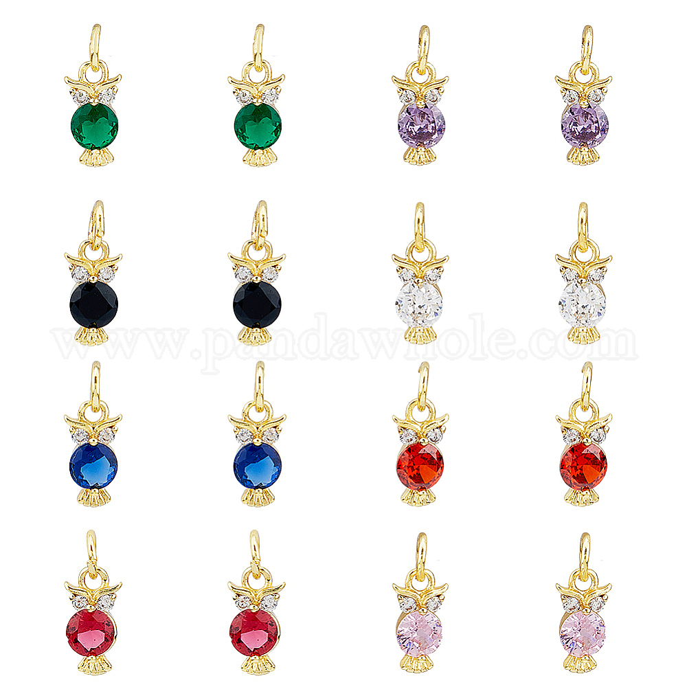 16 шт. 8 цвета латунные микро-паве кубические циркониевые подвески, реальный 18 k позолоченный, без кадмия и без свинца, сова