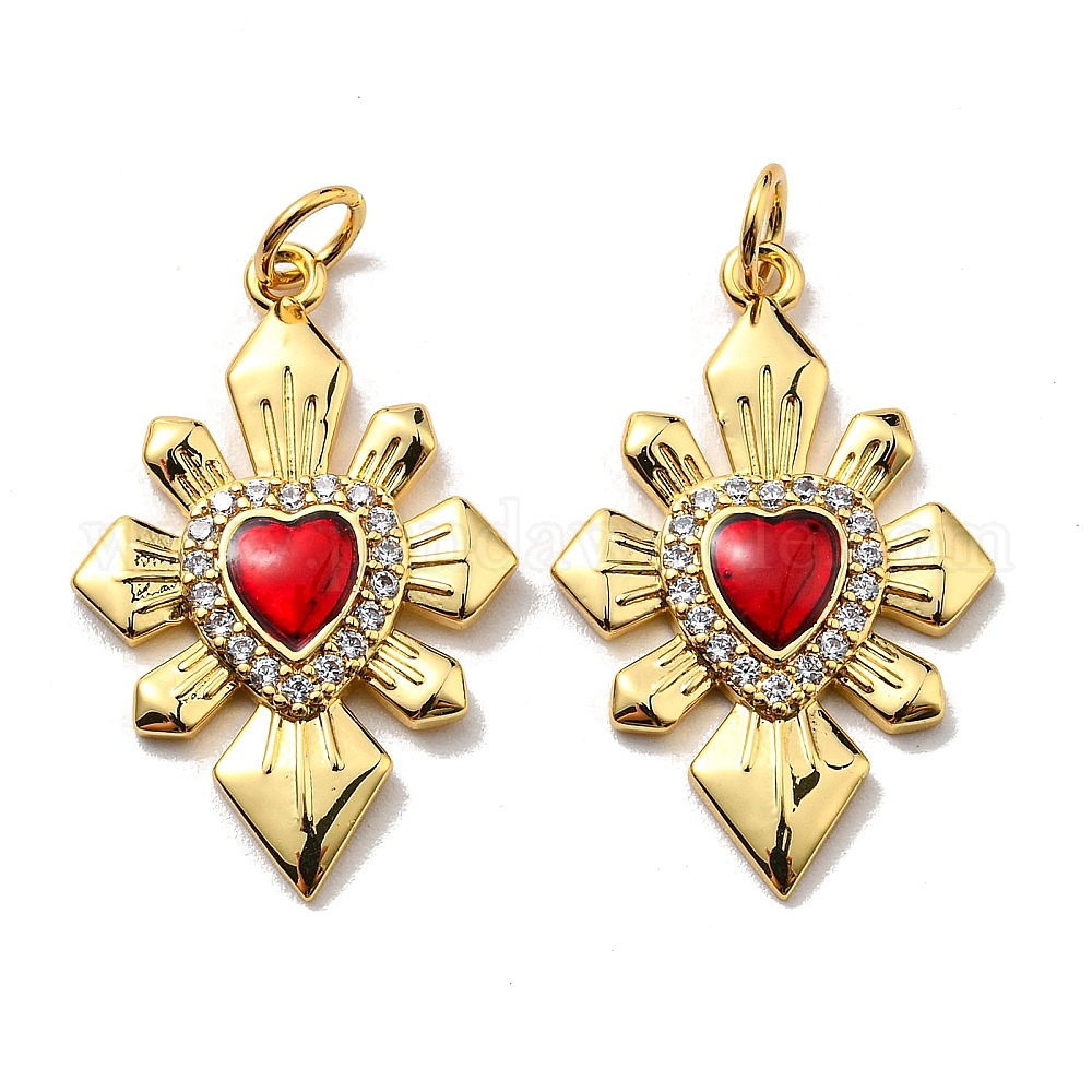 • Настоящее золото 18K Стойки обшивки латунь кубического циркония подвески, с эмалью, без свинца и без кадмия, долговечный, сердце, реальный 18 k позолоченный, 27x17x3 мм, отверстие : 3.6 мм
