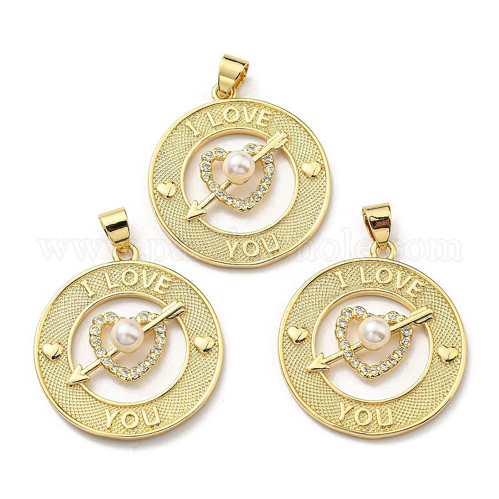 Латунные фианиты с пластиковыми жемчужными подвесками, долговечный, без свинца и без кадмия, плоско-круглые