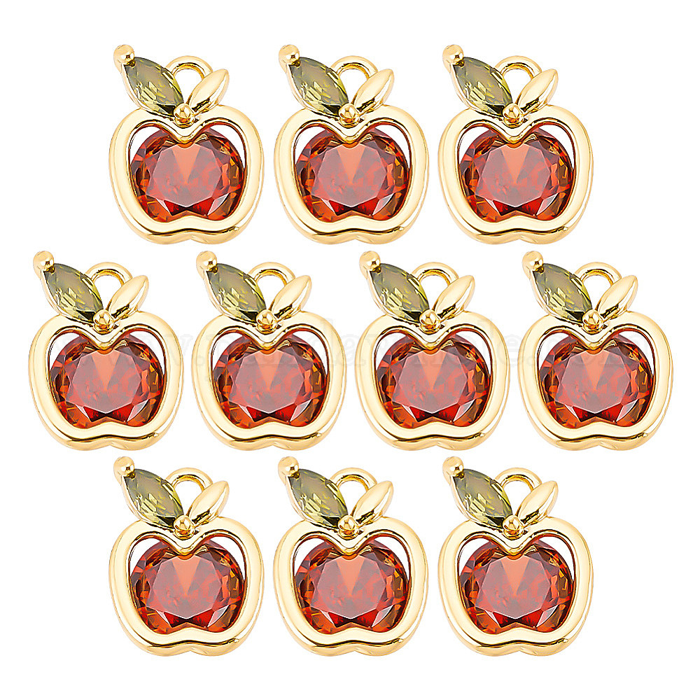 10шт. подвески из кубического циркония, реальный 18 k позолоченный, с латунной фурнитурой , яблоко, красные