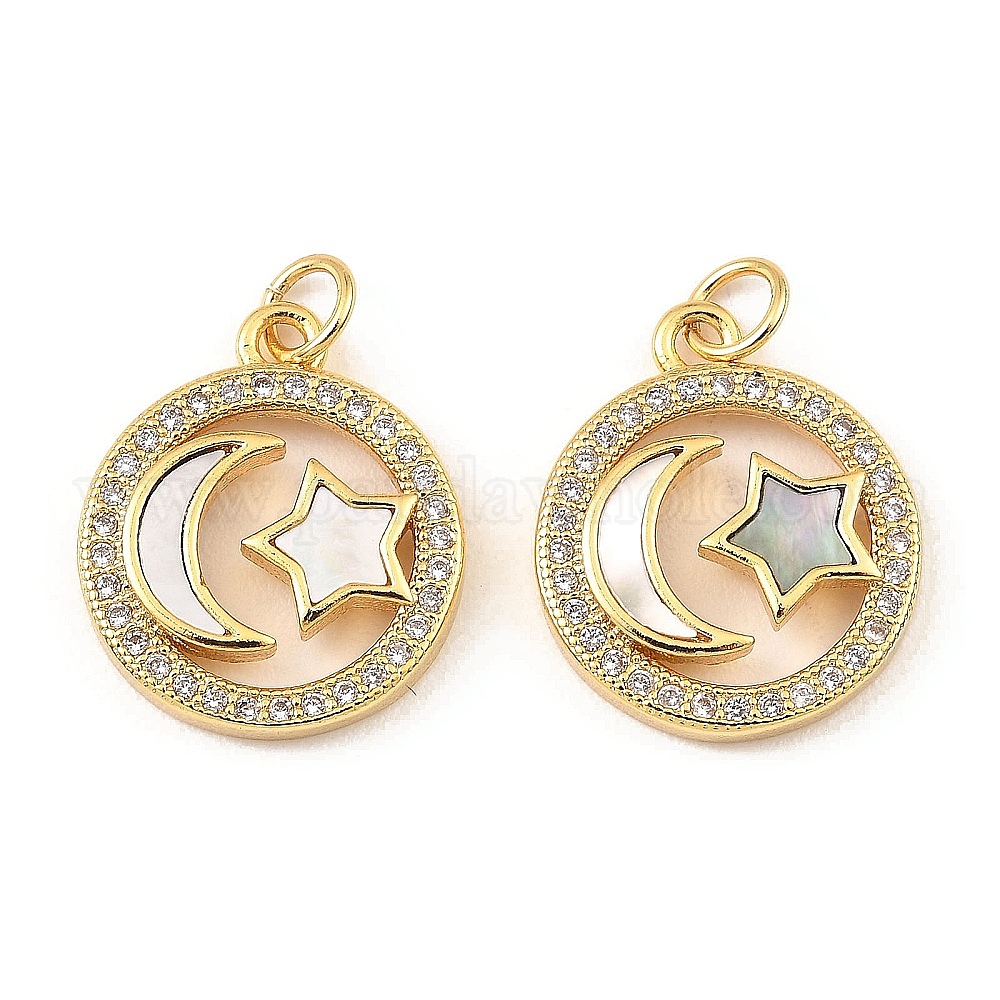 Латунь с фианитами и подвесками-ракушками, долговечный, без свинца и без кадмия, плоско-круглые